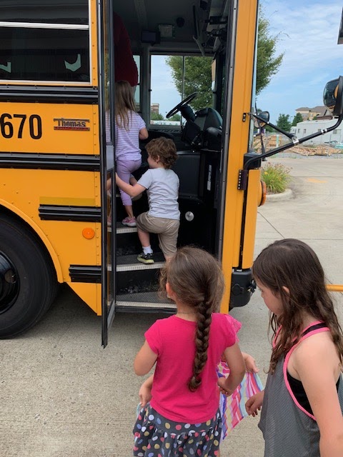 Today, the school bus came to visit our Kindergarten Boot Camp cadets! They were so excited to meet "Buster" the friendly talking bus. We also learned the proper way to get on and off the bus, the safety zone around the bus, and bus rules to keep us safe!